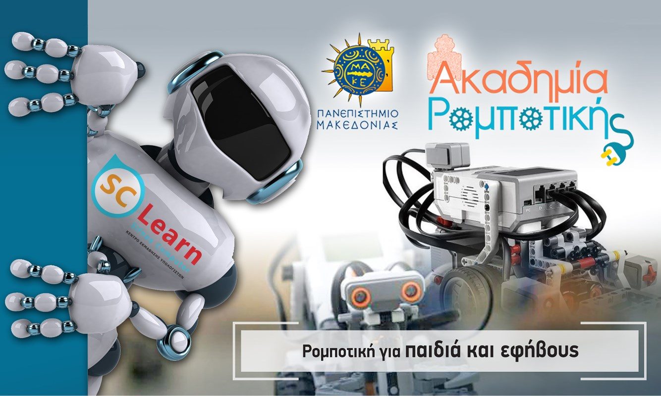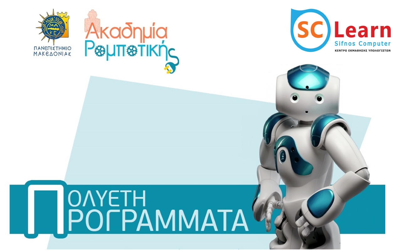 Με χαρά σας ανακοινώνουμε ότι στον χώρο μας από την νέα σχολική χρονιά θα υλοποιούνται τα προγράμματα εκπαιδευτικής ρομποτικής της Ακαδημίας Ρομποτικής του Πανεπιστημίου Μακεδονίας για παιδιά 6 – 16 ετών (Α Δημοτικού – Α Λυκείου).